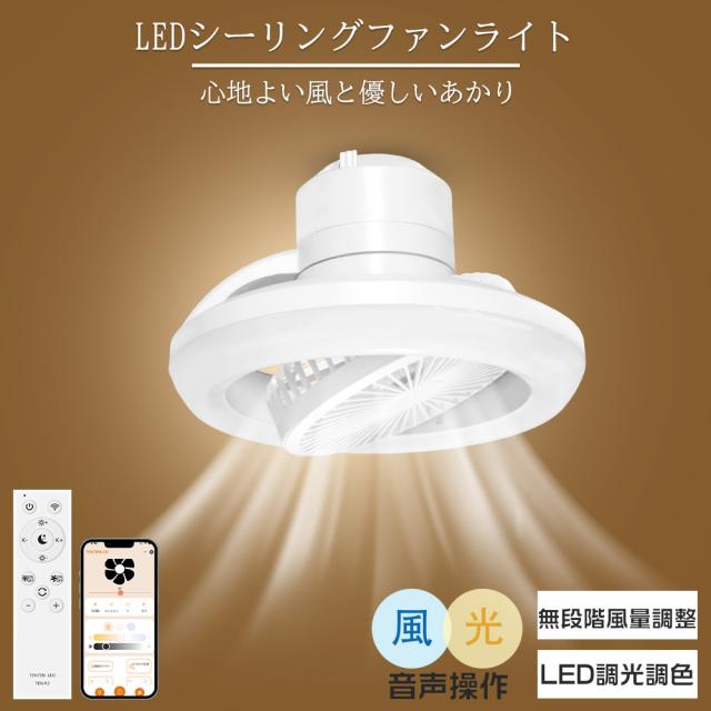 照明と風扇が一体化したシーリングライト。省エネ&静音設計のDCモーターを搭載し、静かな風を送風。リモコン・アプリ操作に加え、Alexaなどのスマートスピーカーにも対応。無段階調光・調色、Ra85高演色性LEDで光も風も自分好みに調整可能。E26口金&引掛けシーリングが対応で、工事不要・届いてすぐ使える手軽さも魅力です。