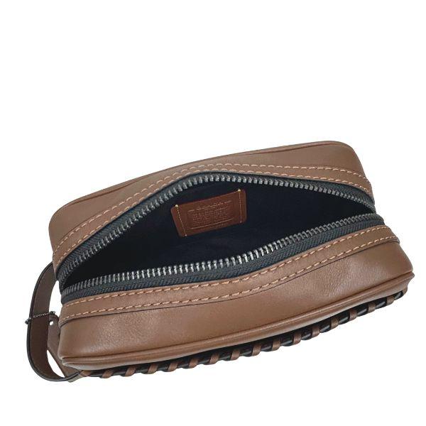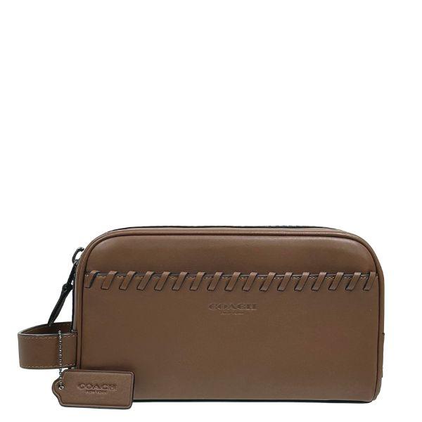 国内発送 コーチ ポーチ メンズ COACH セカンドバッグ ウィップスティッチ スモール トラベルキット CBE03 QB/SD サドル