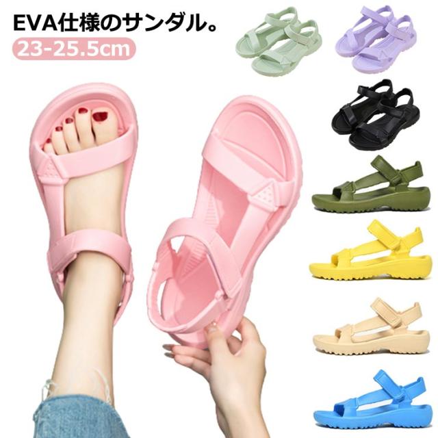 THOM WILLS EVA 軽量 スポーツサンダル サンダル レディース ブラック ホワイト 黒 白 カーキグリーン ストラップサンダル ビーチサンダル アウトドア フェス レジャー 海 キャンプ