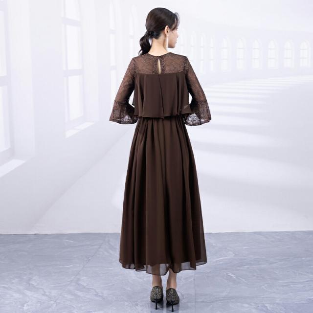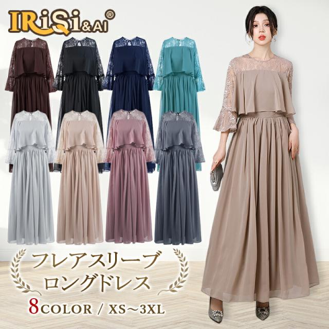 パーティードレス ロングワンピース レ レディースファッション 続々登場 ブラウン ブラック ネイビー ターコイズ ライトグレー モカ スモーキーピンク ダークグレー XS S M L XL 2XL 3XL