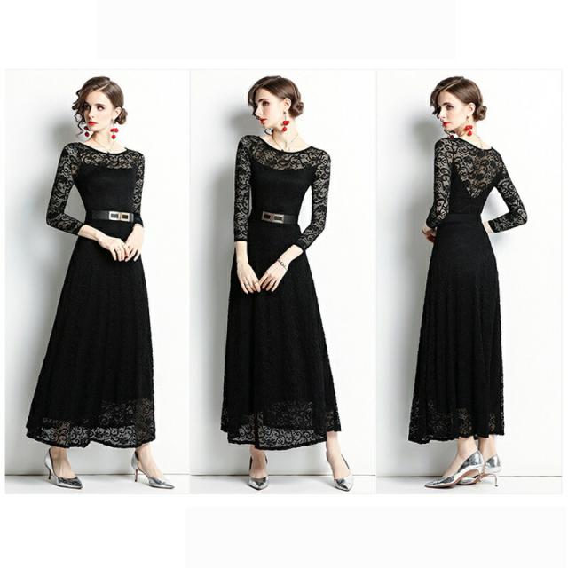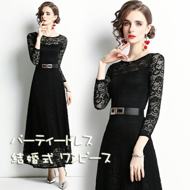 パーティードレス 結婚式 ワンピース 20代 30代 総レース パーティドレス 刺繍 ウェディングドレス ウエディング ドレス 二次会 花嫁 ブライズメイド ロングドレス マキシ丈 長袖 結婚式 入学式 演奏会用 お呼ばれ ワンピース エンパイア 黒 短納期