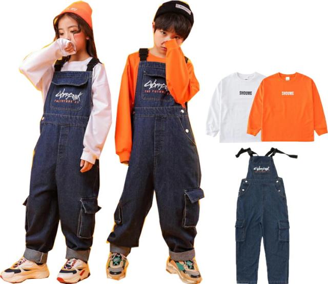 サロペット 子供 ダンス衣装 オーバー キッズ オーバーオール 続々登場 パンツ 白2点セット オレンジ2点セット 110 120 130 140 150 160 170 180