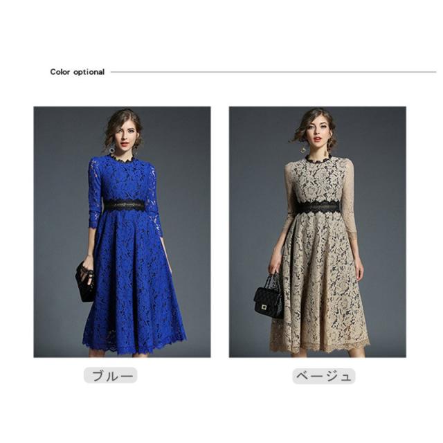 パーティードレス ミモレ丈 総レース レディースファッション 超目玉商品 ベージュ ブルー S M L XL XXL