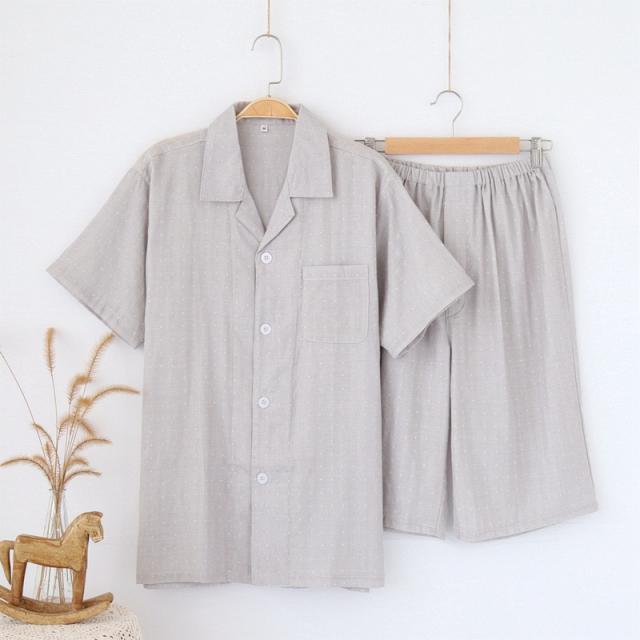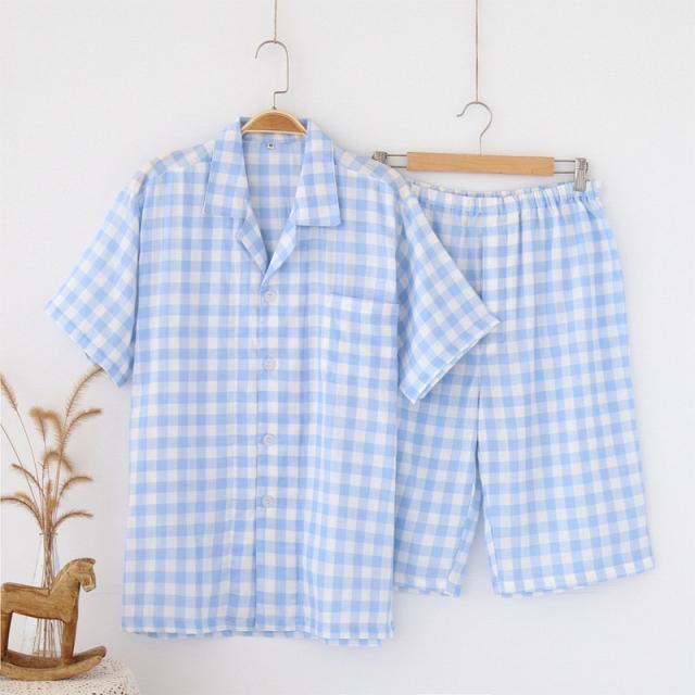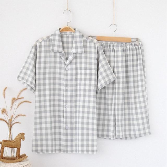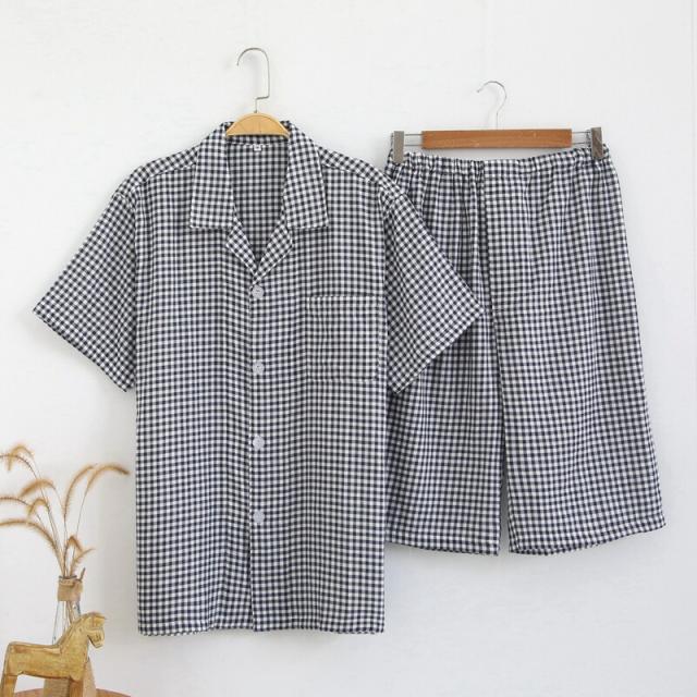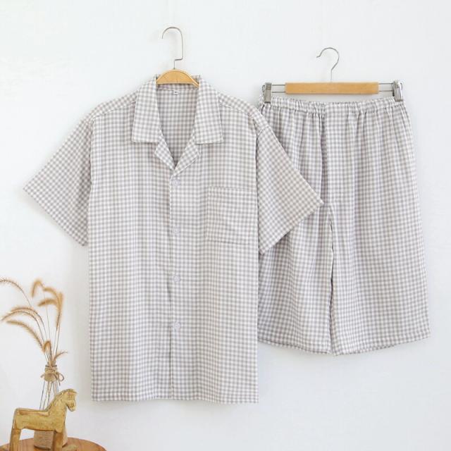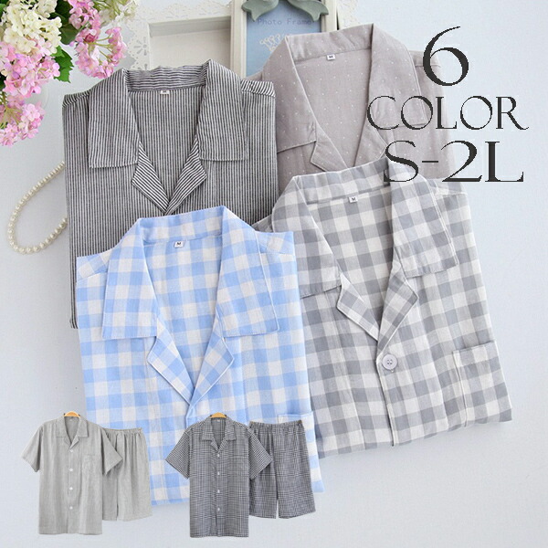 パジャマ メンズ 半袖 半ズボン チェック柄 ダブルガーゼ メンズパジャマ 綿100% 夏用 前開き ルームウェア セットアップ コットン ガーゼパジャマ