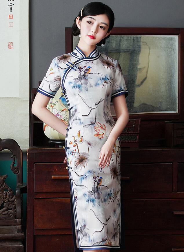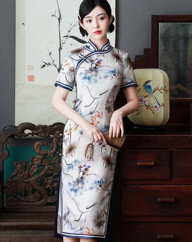 チャイナドレス ミモレ丈 ロング丈 半 レディースファッション 新登場! M L XL 2XL 3XL 4XL