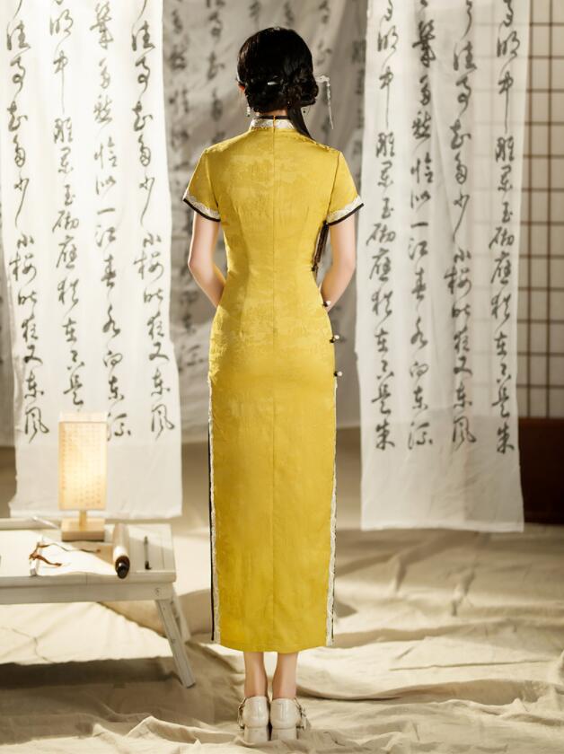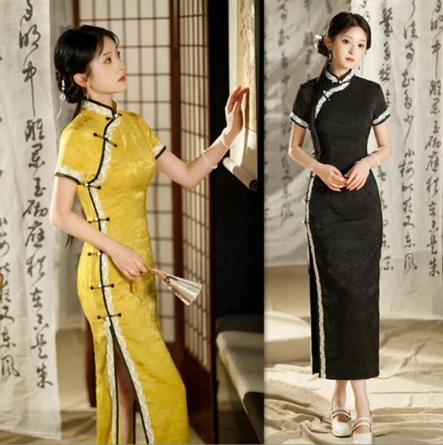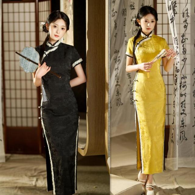 チャイナドレス ロング マキシ丈 チャ ドレス 新登場! M L XL 2XL 3XL 4XL ブラック イエロー