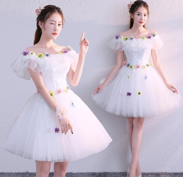 ミニブライズメイドドレスフラワー3D花 ドレス 新登場! XS S M L XL 2XL 白 水色