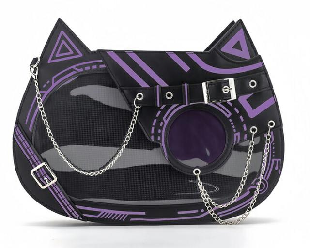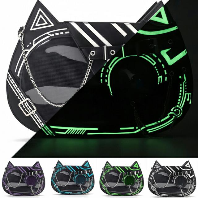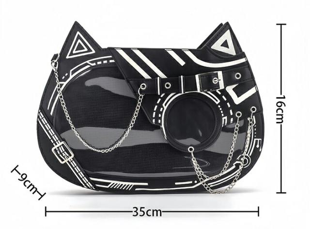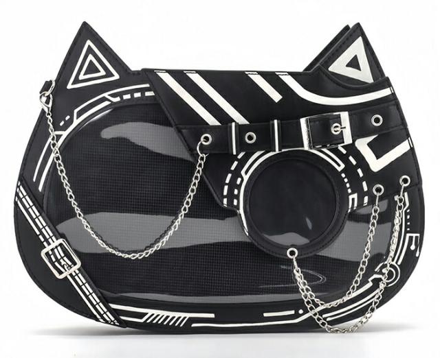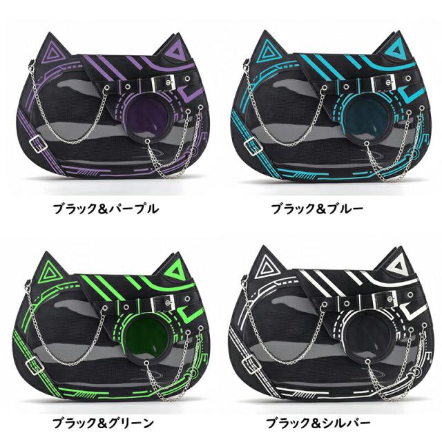 痛バッグ トートバッグ ショルダーバッグ 缶バッチ トート ショルダー PU ゴシック ねこ おしゃれ お出かけ クリアバッグ デコバッグ 個性的 レディース
