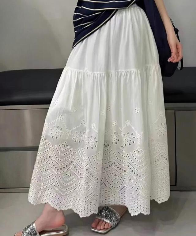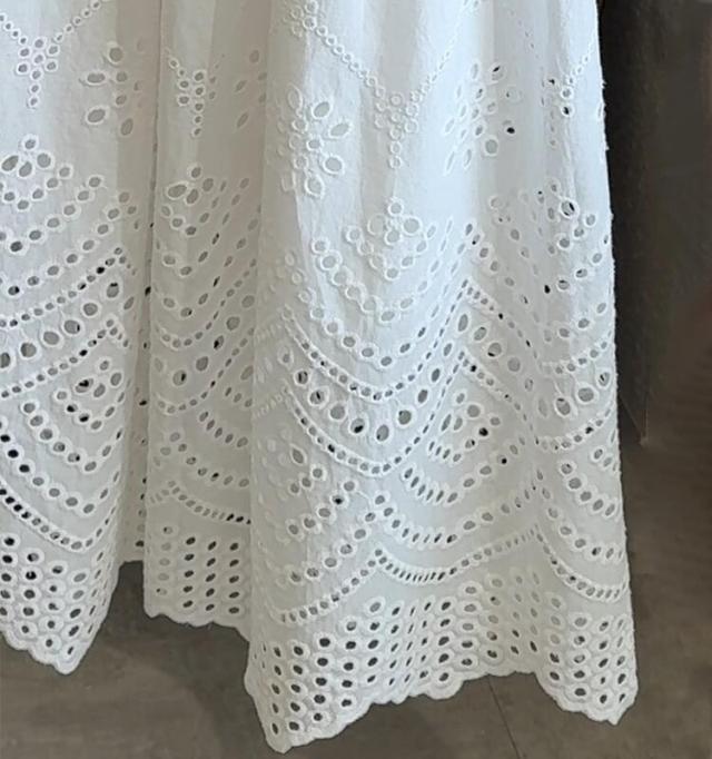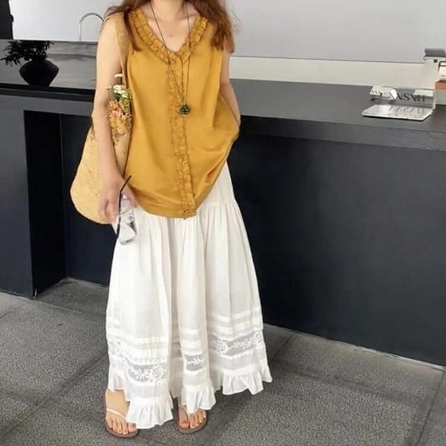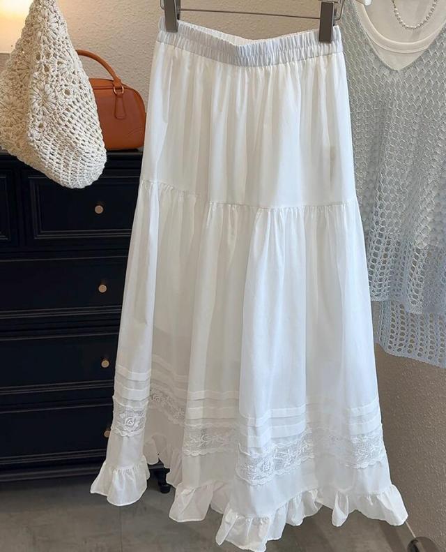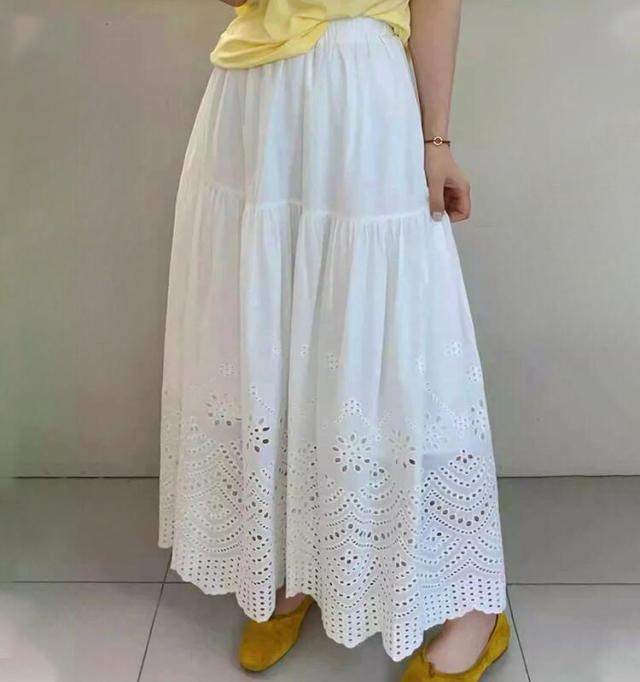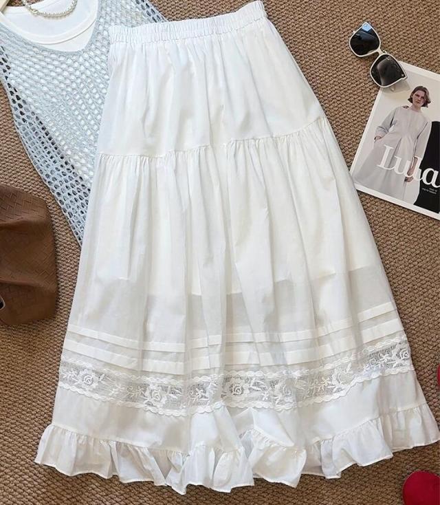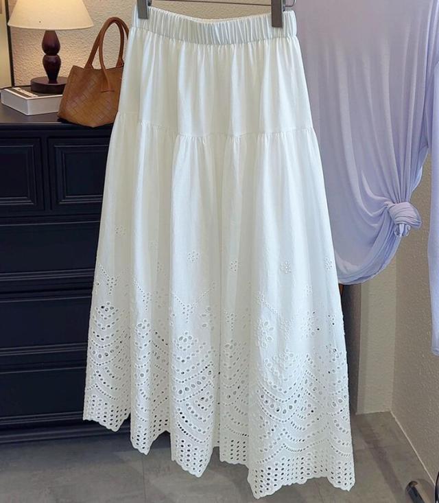 刺繍フレアスカート スカート レディース ロング 夏 きれいめ ボトムス ロングスカート ティアードスカート フリル レース aライン ウエストゴム カジュアル ゆったり 大きいサイズ 白 ホワイト 30代 40代 50代 60代 高身長 低身長 とらみ 送料無料