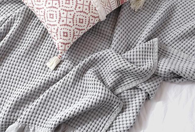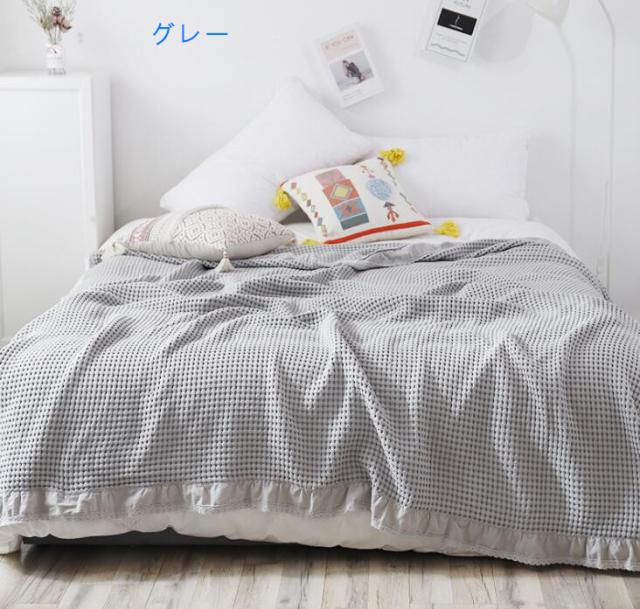 ワッフルケット シングル 綿100% ベッドカバー タオルケット ソファーカバー ふわふわ 冷房対策 ブランケット 毛布 寝具 ワッフル織 カバー キルティング パイピング 4色 150*20 ケット