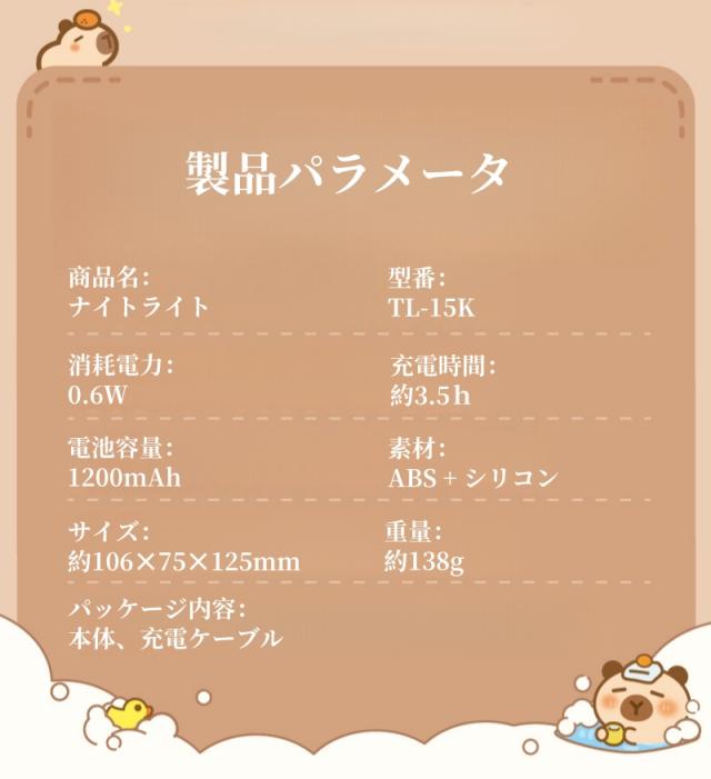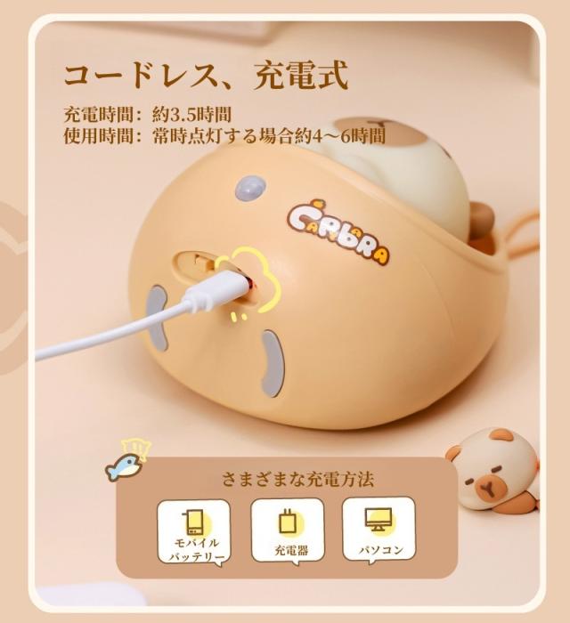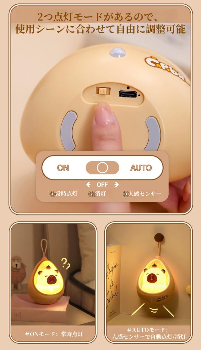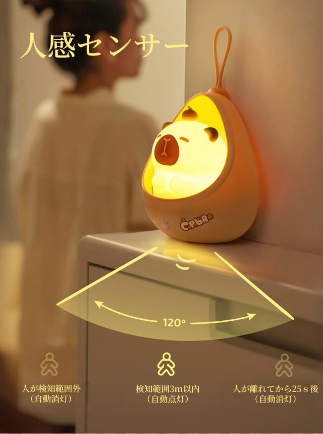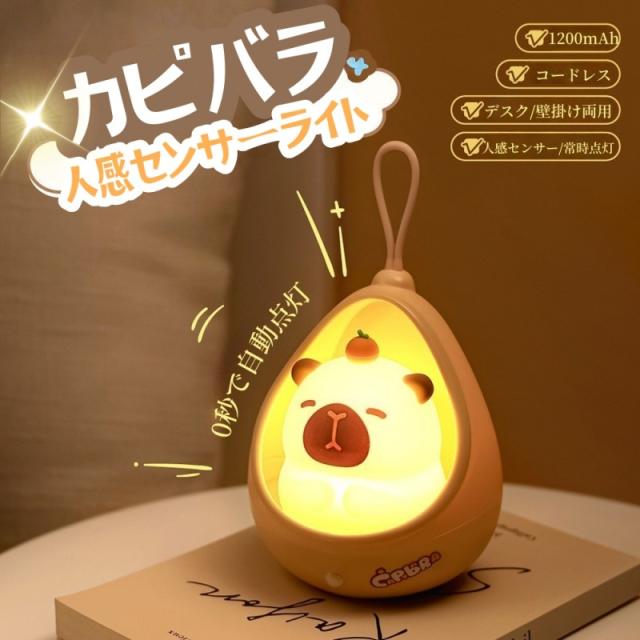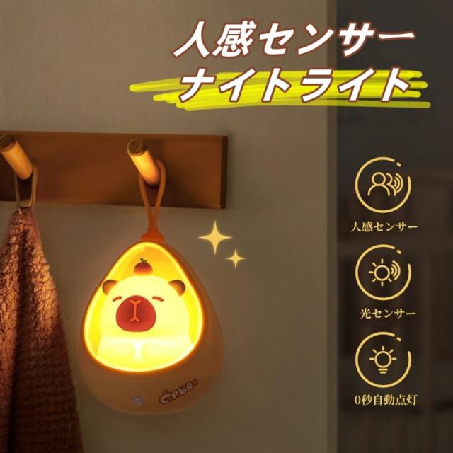 【新品】ナイトライト かわいい カピバラ センサーライト led 充電式 人感 人感センサー 階段 ベビー コードレス 子供部屋 授乳 間接照明 おやすみライト ライト 寝室用 出産祝い 誕生日 プレゼント 子供 ギフト クリスマス