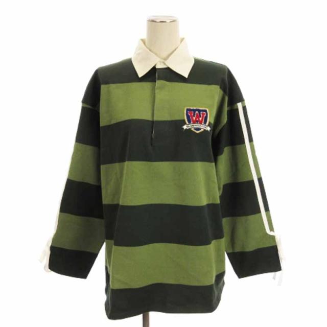 【中古】ザラ ZARA 良品 ラグビーシャツ ポロシャツ 長袖 ボーダー リボン コットン 緑 グリーン XS-S レディース