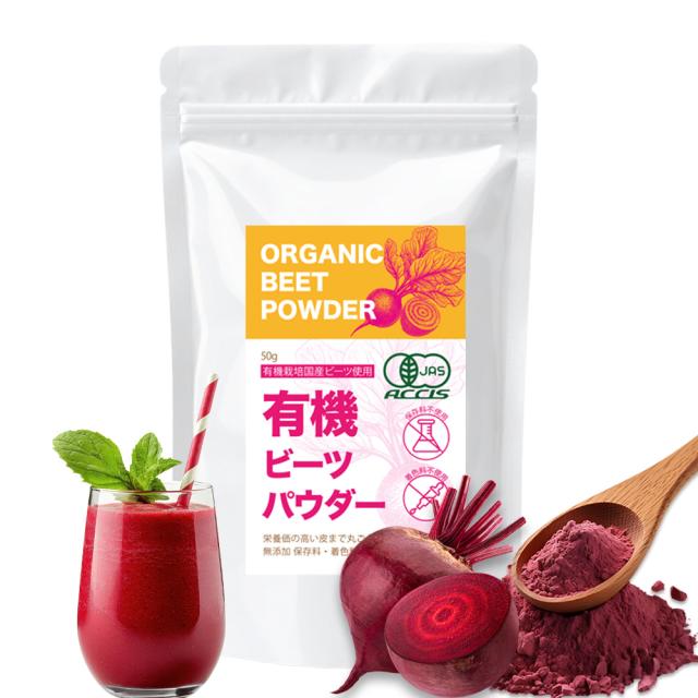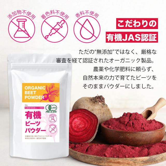 有機ビーツパウダー 50g 鹿児島産産 無農薬栽培 赤ビーツ 100%使用 ( 着色料・香料 無添加 )
