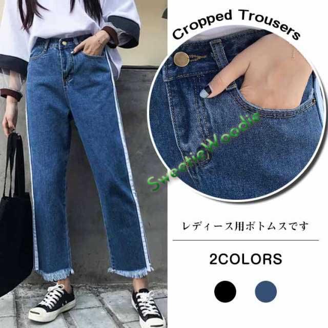 バギーパンツ ワイドデニムパンツ デニムパンツ カットオフデニム 7分丈 サイドライン レディース 大きいサイズ 体系カバー ゆった