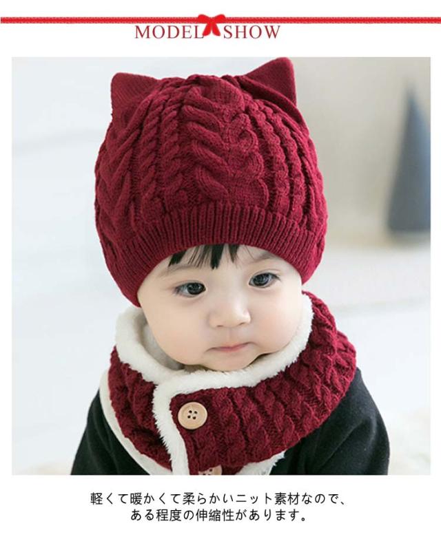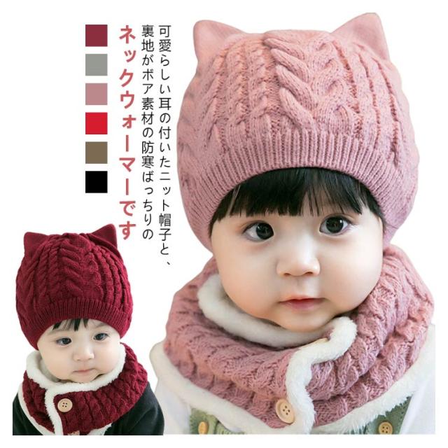 マフラー 赤ちゃん 猫耳 猫耳付き あったか ニット帽 耳付き ネックウォーマーセット ニット帽 ねこ耳 ネックウォーマー 帽子 ベビー 防寒 ちくちくしない 子供用 男の子 女の子 スヌード 出産祝い 誕生日 ギフト クリスマス