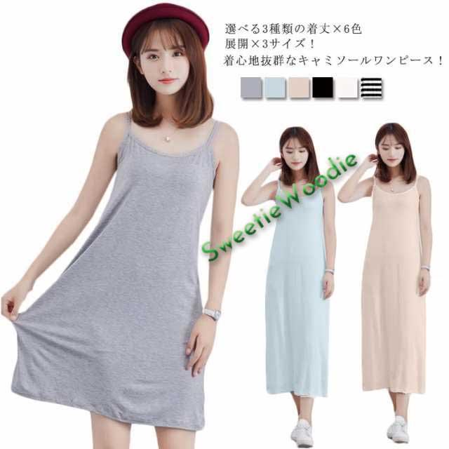 選べる3種類の着丈×6色展開×3サイズ!キャミソールワンピース レディース キャミワンピ ペチコート インナーワンピース キャミソール インナー ワンピース ルームウエア 送料無料 部屋着 膝丈 ミモレ丈 ロング丈 モダール 無地 透けない カジュアル 透け防止 大きいサイズ