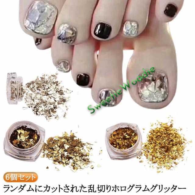 | 6個セット ランダムにカットされた乱切りホログラムグリッター 全体に埋め込んでも綺麗! 流行りのガラスフレンチネイルにも | |