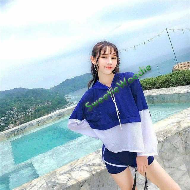 水着 レディース 上下セット 3点セット 前開き 韓国風 スポーツ 長袖水着 サーフィン 海辺 ビーチ ラッシュガード 紫外線対策 日焼け対策 2色
