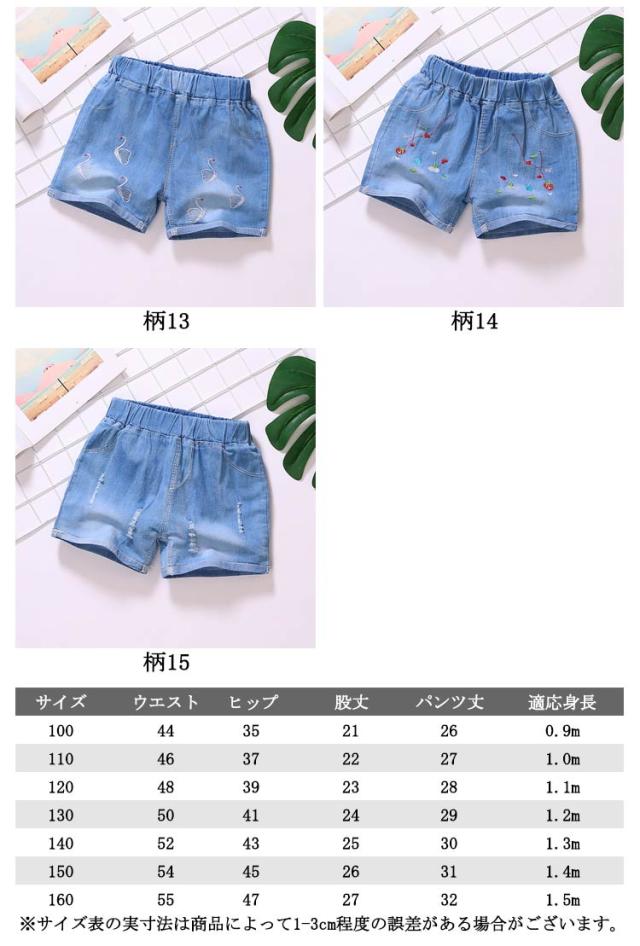 | 15柄!100?160cm トレンドに左右されずたくさん着回せる、 キッズ用デニムショートパンツ | |