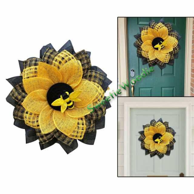蜂ひまわり花輪.人工花輪家の装飾のためハンギング屋内屋外の装飾品フロントドア寝室の壁窓ホームオフィス