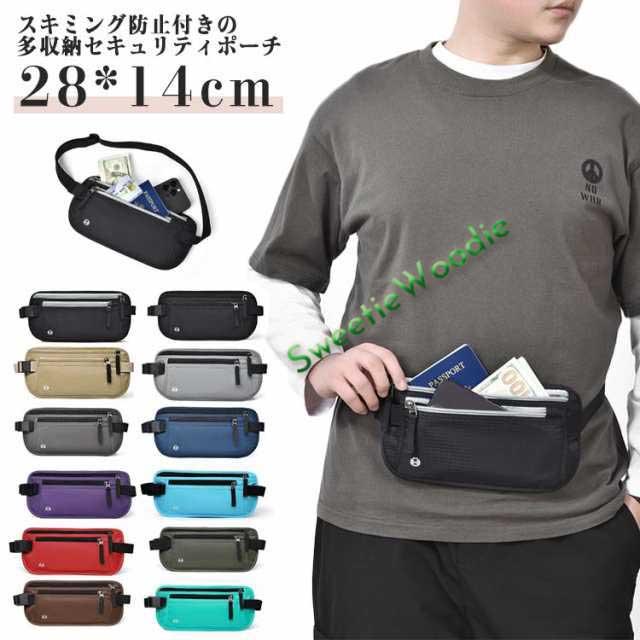 シークレットポーチ 海外旅行 ウエストポーチ スキミング防止 防犯 パスポートケース ウエストバッグ セキュリティポーチ トラベル 貴重品入れ 盗難防止 服の下 隠せる 薄い