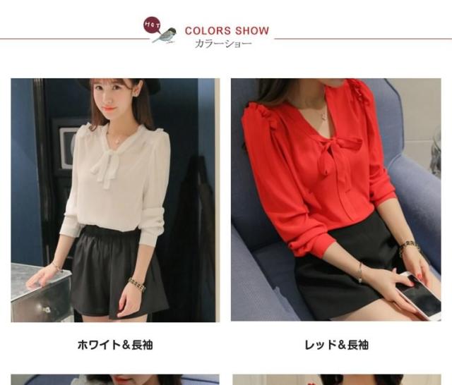 | ボウタイ付きブラウスが登場透け感のあるシフォン素材ですので、キャミソールなどを合わせてセクシーさをアピールするのもオススメです。清楚とセクシーさがマッチした大人キュートなブラウスですこれからの季節におすすめの一着です | |