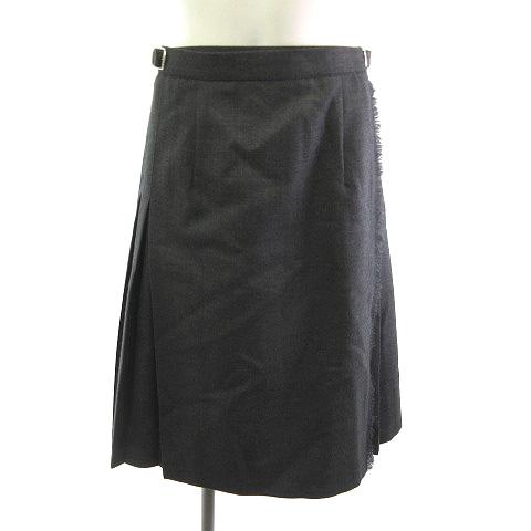 【中古】オニール オブ ダブリン O'NEIL OF DUBLIN ラップスカート 膝丈 プリーツ ウール フリンジ グレー 42