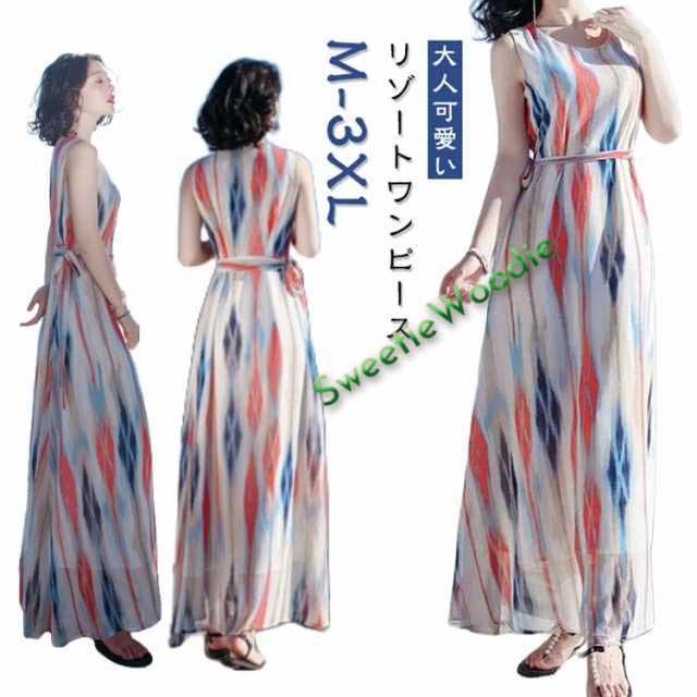 小柄 ハワイ かわいい 夏ワンピース リゾートワンピ 沖縄 ノースリーブ ハワイアン リゾートワンピース 夏 大人可愛い 結婚式 ワンピース おしゃれ ロング 夏ワンピ ベルト付き ボヘミア風 裏地付き 大きいサイズ