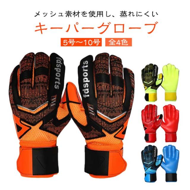 | 全4色 5号?10号 メッシュ素材を使用し、蒸れにくい キーパーグローブ 親指の根元に切れ込みが入ったことにより稼働力アップになります。 キッズ、ジュニアの練習や試合用、中高、大学の部活やチームの練習用に最適です。 EVAバックハンド:柔軟性、耐久性、衝撃吸収性の見事なハーモニー メッシュ素材を使用し蒸れにくいです。 手首に360度巻けるロングベルト採用します。 コスパ抜群サッカー、フットサル ゴールキーパー用品です。 | |