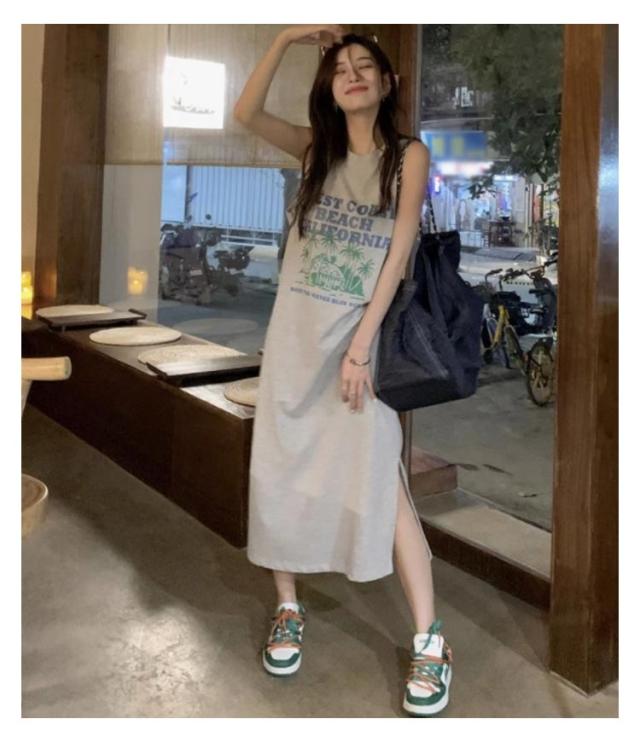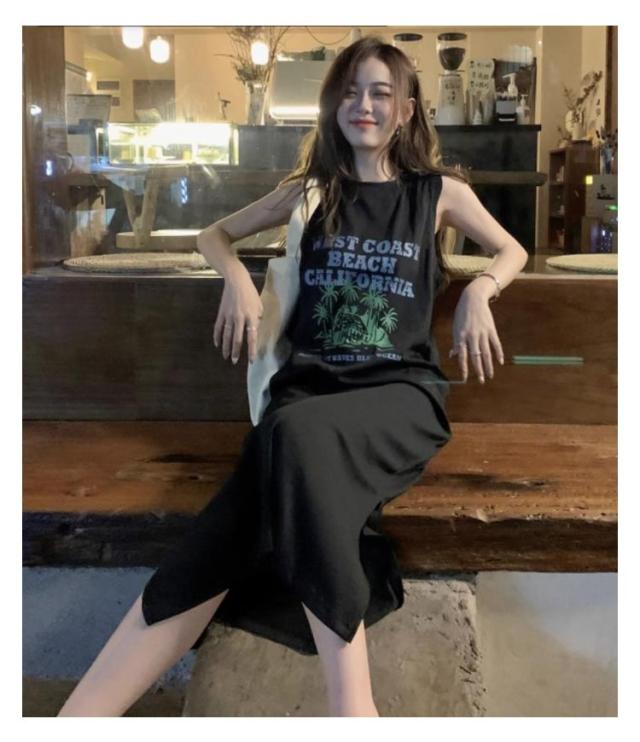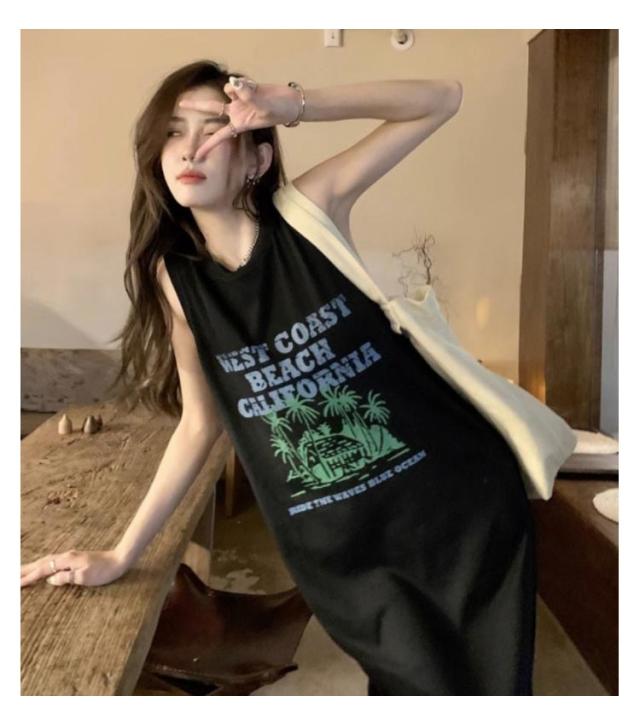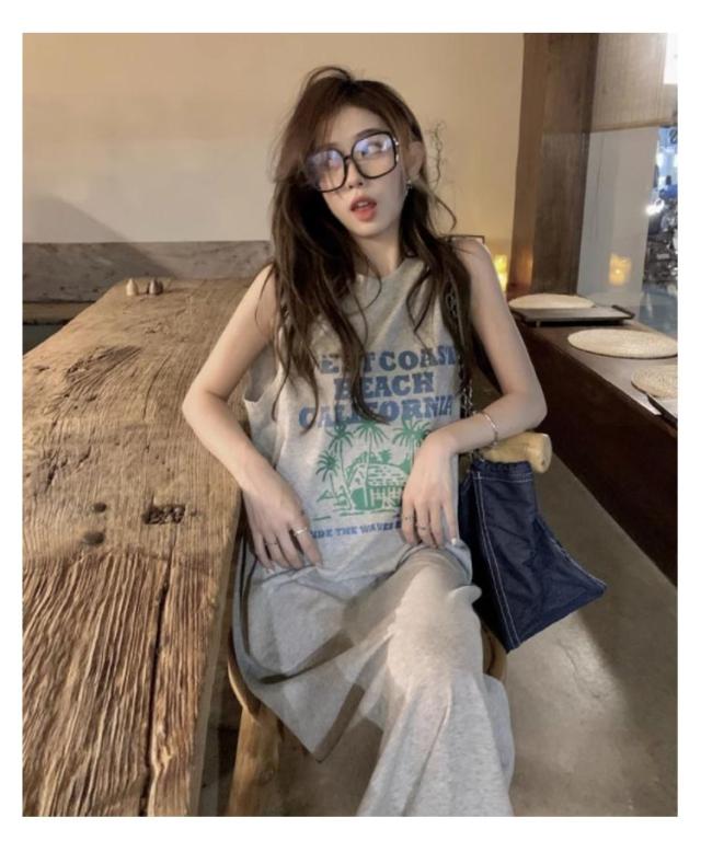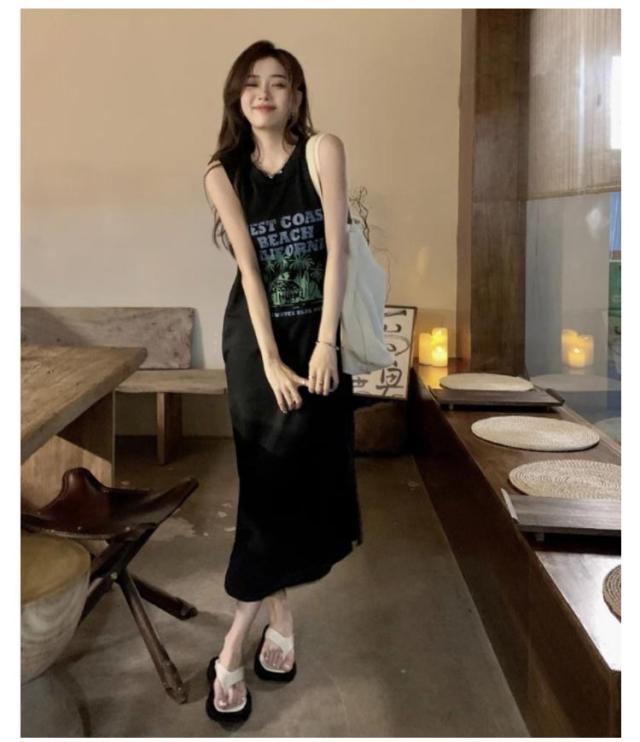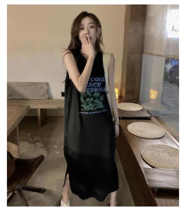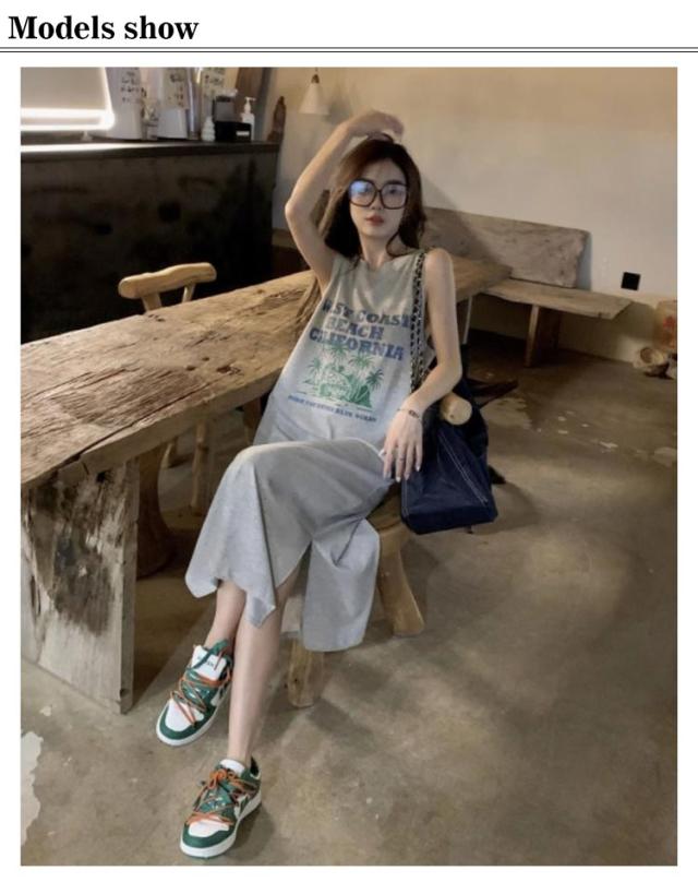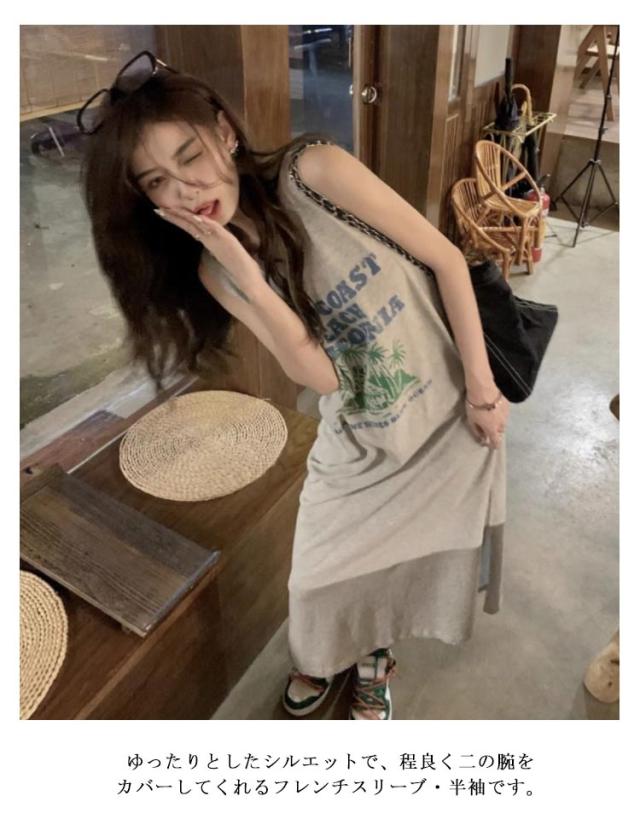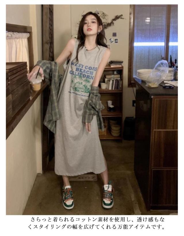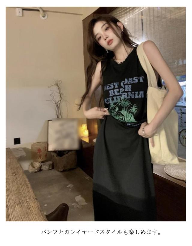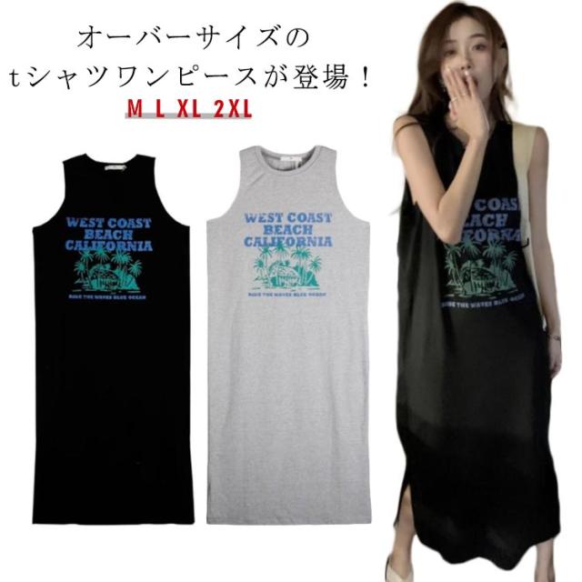 ロング丈 プリント トップス ワンピース Tシャツ タンクトップ ロングワンピ カジュアル 英字ロゴ 夏 ゆったり レディース 膝下丈 大きいサイズ レイヤード ロングワンピ かわいい ルームウェア 春 Tシャツワンピース