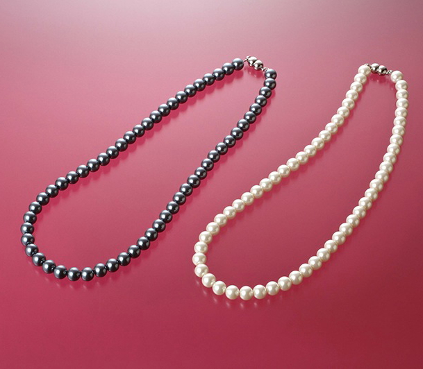 【現品サイズ(約)】全長46cm【現品重量(約)】38g/1本【材質】●ガラスパール(人口真珠)8mm珠●中糸:ステンレスワイヤー●留め具:マグネット【付属品】専用巾着袋、ジュエリー品質保証書【セット内容】ホワイト、ブラックの2色組【生産国】日本【メーカー】ハイリッチ株式会社