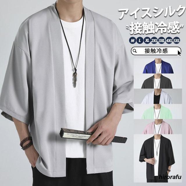 カーディガン 夏 メンズ 甚平風 サマーカーディガン アイスシルク 接触冷感 七分袖 薄手 涼しい 羽織り 前開き 冷房対策 春 春服 秋 秋服