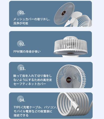 扇風機 小型 卓上扇風機 折りたたみ 静音 コードレス USB充電 風量3段階調節 ミニファン アロマ 吊り下げ 大風量 4way 携帯 卓上 手持ち