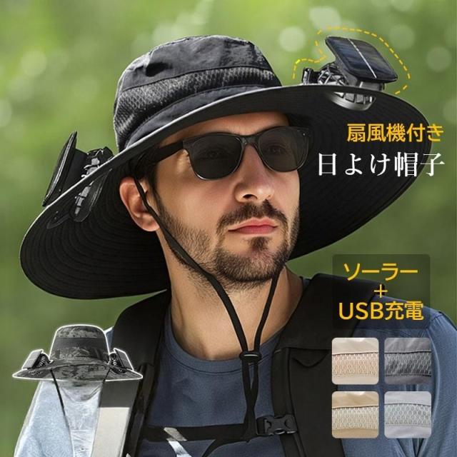 日よけ帽子 扇風機付き メンズ レディース おしゃれ 登山 つば広帽子 大きいサイズ ファン付き ソーラー USB充電 キャップ アウトドア 熱中症対策グッズ 農作業