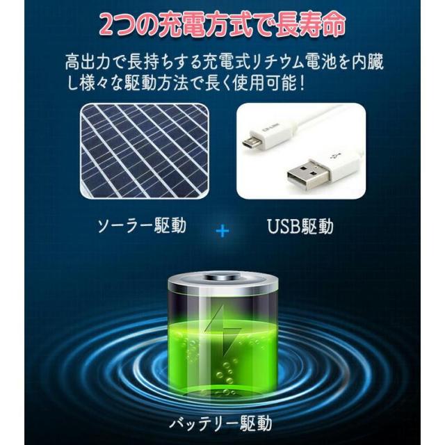ソーラーパネルを日光を当てることで充電できます。