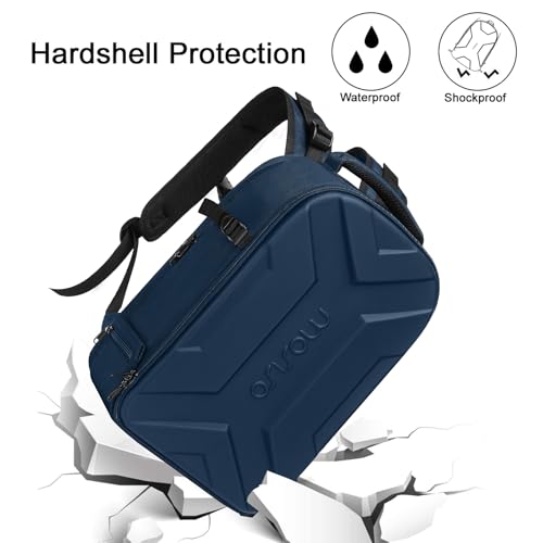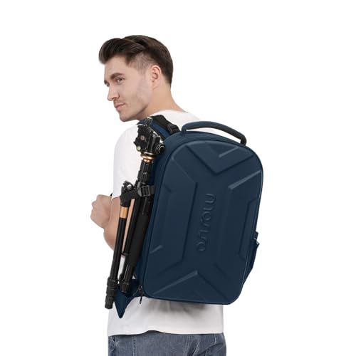 カメラバッグ カメラリュック リュックサック DSLR SLR ミラーレス一眼 撥水 アーティスティック 幾何学的 ハードシェルケース Canon Nikon Sony 三脚スタンド 15-16インチ ノートPCの間仕切り付き (スチールブルー)
