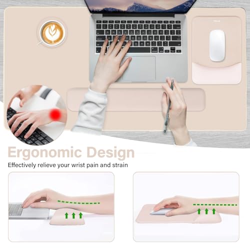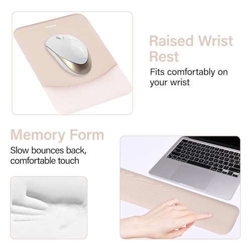 キーボード マウスパッド セット 大型 ゲーミングマウスパッド 長方形 キーボードリストレスト リストレスト コースター付き 人間工学 滑り止めベース カーブメモリーフォーム付き (杏色)