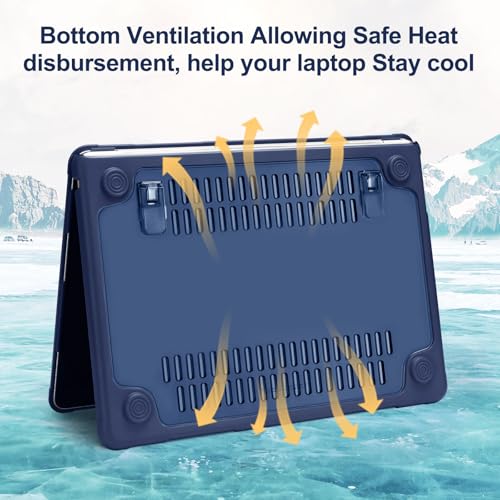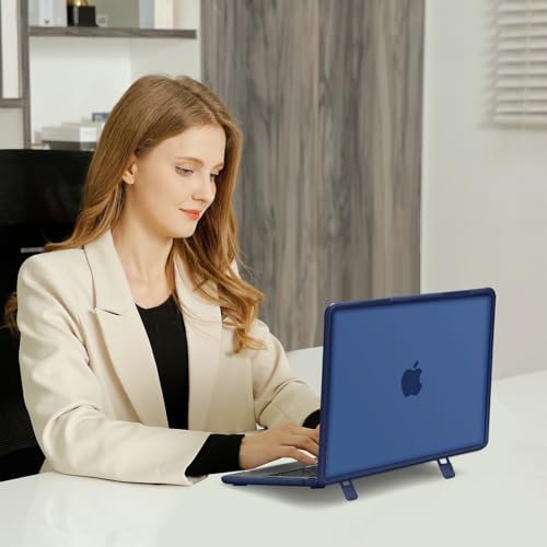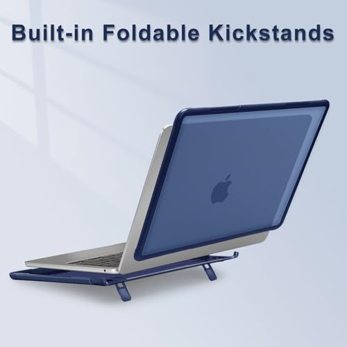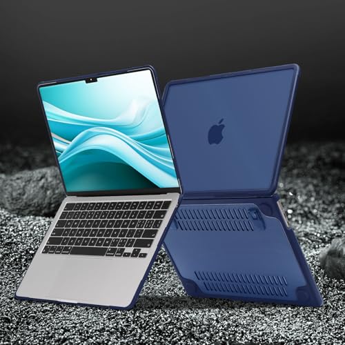 MacBook Air ケース 13インチ M2 M3 M4チップ 2025-2022発売 A3240 A3113 A2681 耐衝撃 頑丈 MacBook Air 13.6インチ プラスチック 折りたたみ式 ハードカバー (ネイビー ブルー)