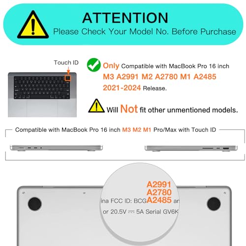 【対応機種】対応機種 MacBook Pro 16 インチ 2025 2024 2023 2022 2021リリース M4 Pro/M4 Max/M3 Pro/M3 Max/M2 Pro/M2 Max/M1 Pro/M1 Max ChipとLiquid Retina XDR Display & Touch ID付き(モデル: A3403 A3186 A2991 A2780 A2485)のみ対応します。注意:このケースは他の言及されていないモデルとは互換性がありません。