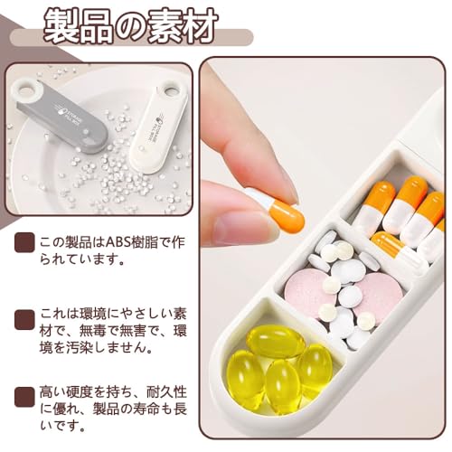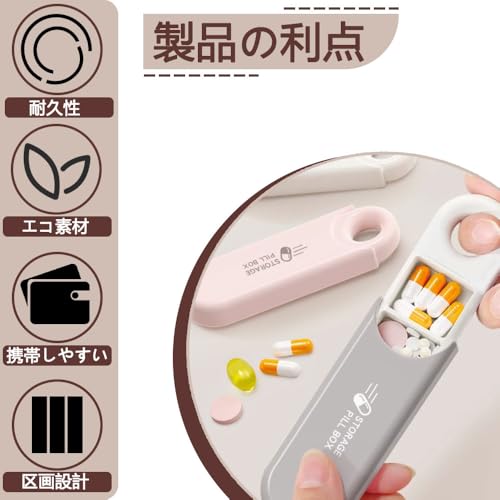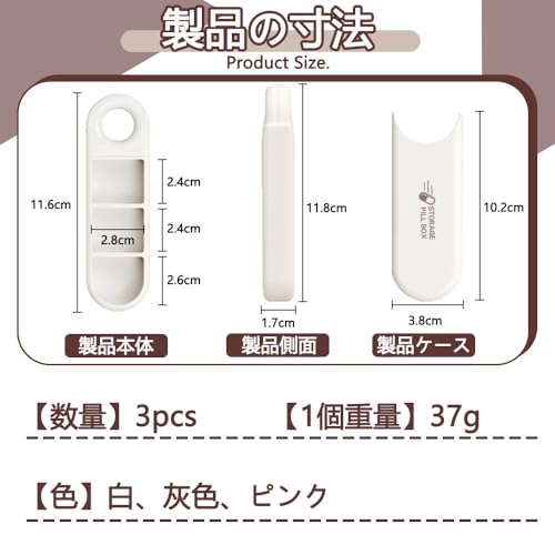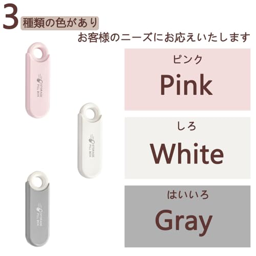 【商品紹介】 これは薬丸を収納するポータブルな小さな容器で、1セットに3個入り、白、グレー、ピンクの3色がそれぞれ1個ずつです。外出時や日常生活での薬の持ち運びに便利です。