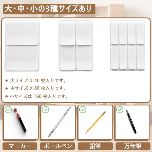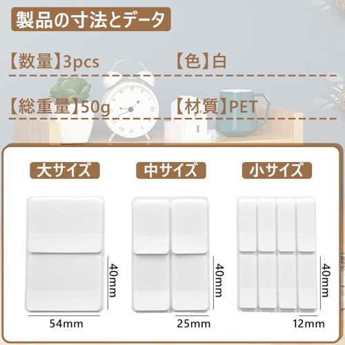 商品の説明 これは PET 材質の粘着シートセットで、白い色で、大、中、小の 3 種類のサイズが含まれ、合計 280 枚入りです。