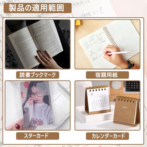【適用範囲】 読書ブックマーク、宿題用紙、スターカード、カレンダーカードなどに使用できます。 また、マーカー、ボールペン、鉛筆、万年筆などの筆記具とも相性が良いです。