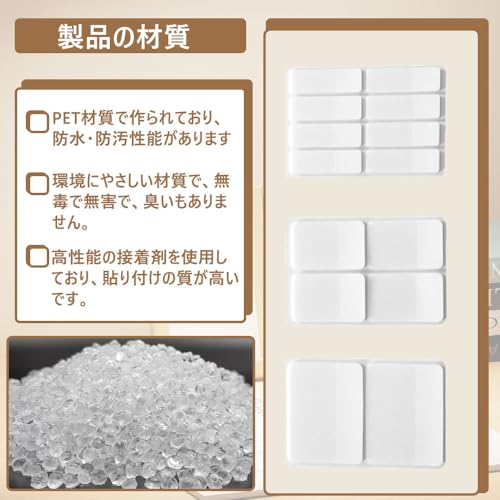 【使用素材】 PET 材質でできており、防水・防汚性能に優れています。 環境にやさしく、無毒無害で臭いもなく、高性能な接着剤を使用して貼り付け力が高い 。