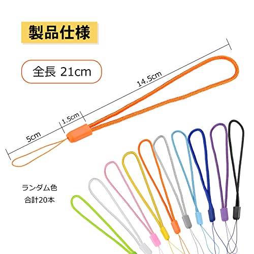 ハンドストラップ ストラップ 手首 携帯ストラップ 多色20本 ハンド ストラップ ショート 落下防止 紛失防止 ストラップ パーツ 手つくり 自作 USBメモリ スマホ キー カメラ ホイッスル用 カラフル ランダム色