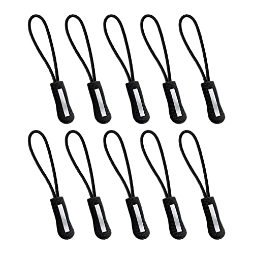 ジッパープル 反射材付き ファスナープルコード ジッパータブ ファスナープル ジッパー ファスナー用 交換 プルコード ファスナープルタブ ファスナー 引き手 取り付け簡単 つかみやすい 反射 滑り止め (ブラック 10本セット)