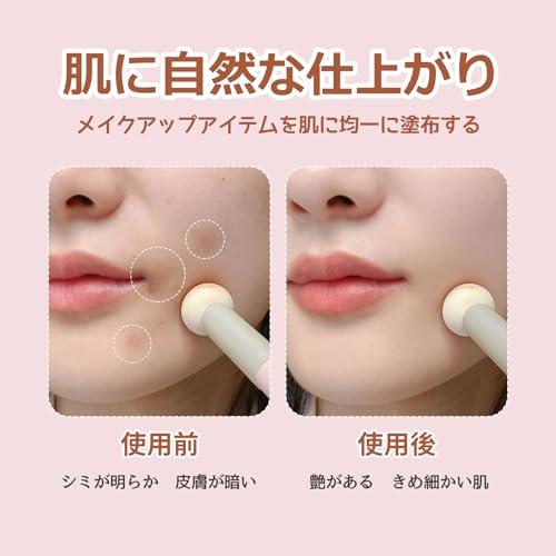 【化粧専用のスポンジヘッド】ブラシヘッドは化粧専用のスポンジ素材で作られています。スポンジ素材は柔らかくて弾力性があり、肌に刺激を与えることなく使用することができます。柔らかさにより、コンシーラーを均等に吸収しやすい、肌に優しく密着し、肌に自然な仕上がりを与えます。肌にやさしく、快適な使用感を提供します。