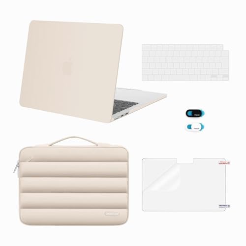 MacBook Air ケース 13インチ M4 M3 M2チップ 2025-2022発売 A3240 A3113 A2681 MacBook Air 13.6インチ (プラスチック) ハードシェルケース & フリースリーブバッグ & (日本語 JIS配列) キーボードカバー & ウェブカメラカバー & 液晶保護フィルム (砂色)