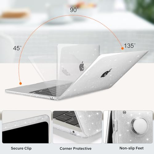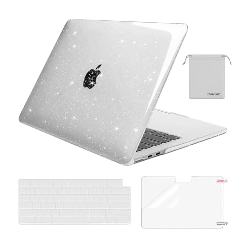 MacBook Air ケース 13インチ M2 M3 M4チップ A3240 A3113 A2681 2025-2022発売 キラキラ 保護 MacBook Air 13.6インチ プラスチック ハードカバー & (日本語JIS配列) キーボードカバー & スクリーンプロテクター & 収納バッグ (クリア)