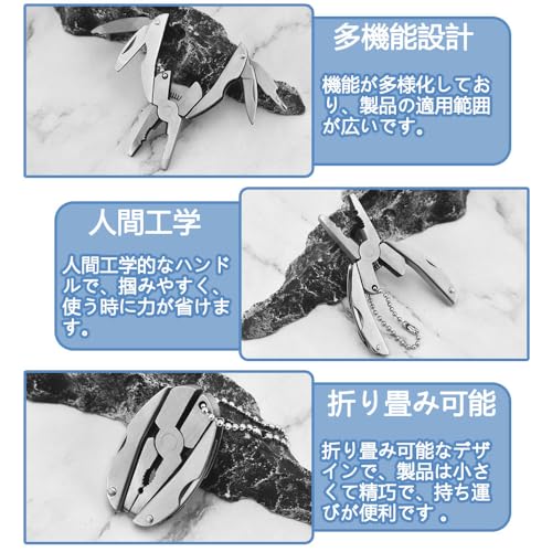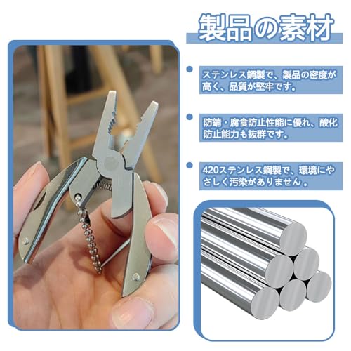 マルチツール キーホルダー 折りたたみ式 ステンレススチール製 ミニペンチ マルチ 工具 ツール マルチツール ペンチ 万能工具 多機能ペンチ サバイバル キャンプ 防災用品 (1pcs)