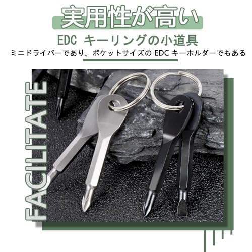 ミニドライバー 多機能 ドライバー キーホルダー 工具キーホルダー キーホルダー ドライバー ミニドライバーセット ポータブル クロスヘッドねじ回し スリットねじ回し 2個入り グレー ブラック